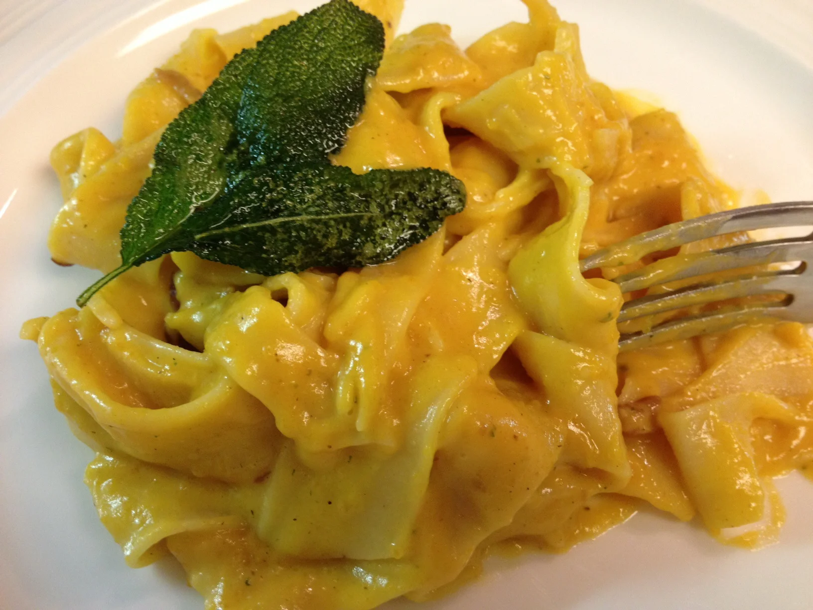 The recipe calls for kabocha squash but we had easy access to butternut so substituted that instead. Saute it in butter, add some fragrant spices and fresh sage, and allow to brown.